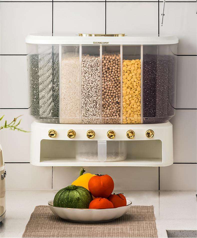 Type: Wall mounted rice dispenser / grain kitchen organizer