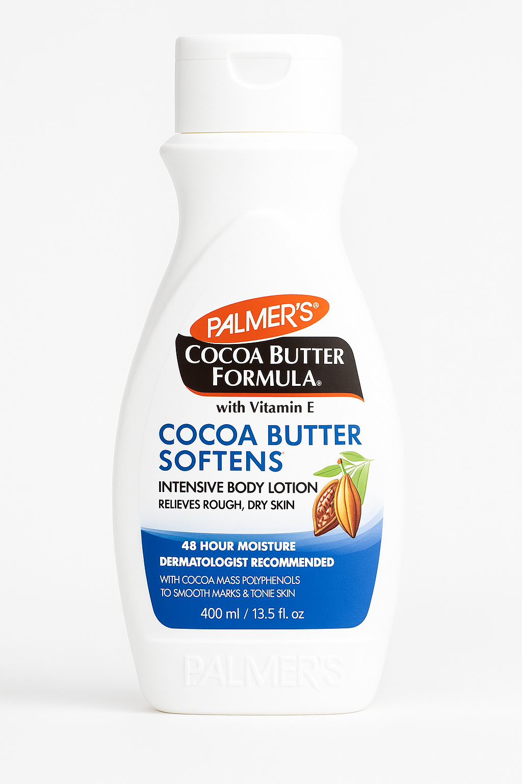 Palmer’s Cocoa Butter Formula with Vitamin E is a trusted skincare solution designed to provide 48-hour deep hydration and visible skin improvement. Enriched with Cocoa Mass Polyphenols, this intensive body lotion helps reduce stretch marks, even out skin tone, and smooth rough areas. Ideal for dry to very dry skin, this non-greasy, fast-absorbing lotion delivers long-lasting moisture and a smooth, radiant finish. Dermatologist-recommended, it’s suitable for daily use by the whole family.