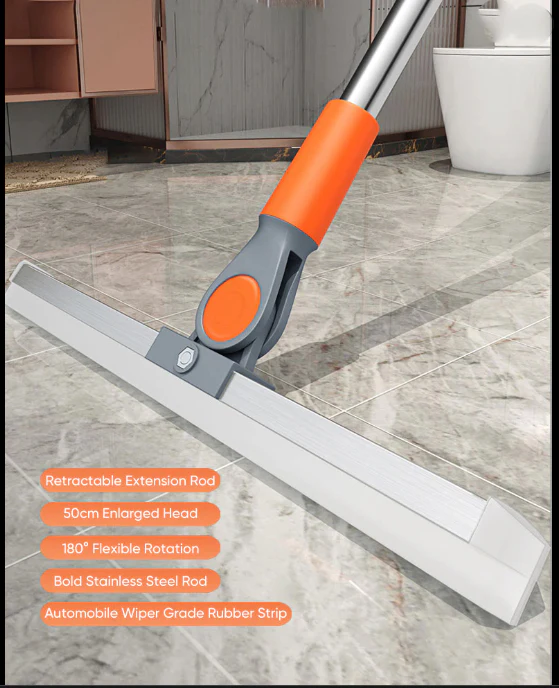 This Rotatable Floor Wiper is a powerful cleaning tool designed for maximum floor coverage and maneuverability. Built with a 50cm enlarged head and 180? flexible rotation, it’s perfect for bathrooms, tiles, and wet floors. The retractable stainless steel rod ensures durability and reach, while the automotive-grade rubber strip delivers streak-free results.